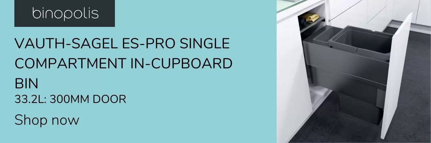 The ES-Pro comes with stylish steel side panels and incredibly reliable steel soft-close runners for a luxury feel. This bin also comes with a separate steel lid which is fixed to the inside of the cupboard, doubling as an additional storage shelf and acting as an effective baffle against odours.